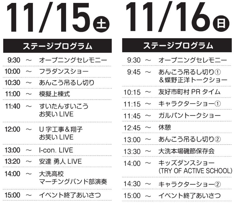 ぜひ、11月15日(土)・16日(日)は大洗マリンタワーにお越しください!
