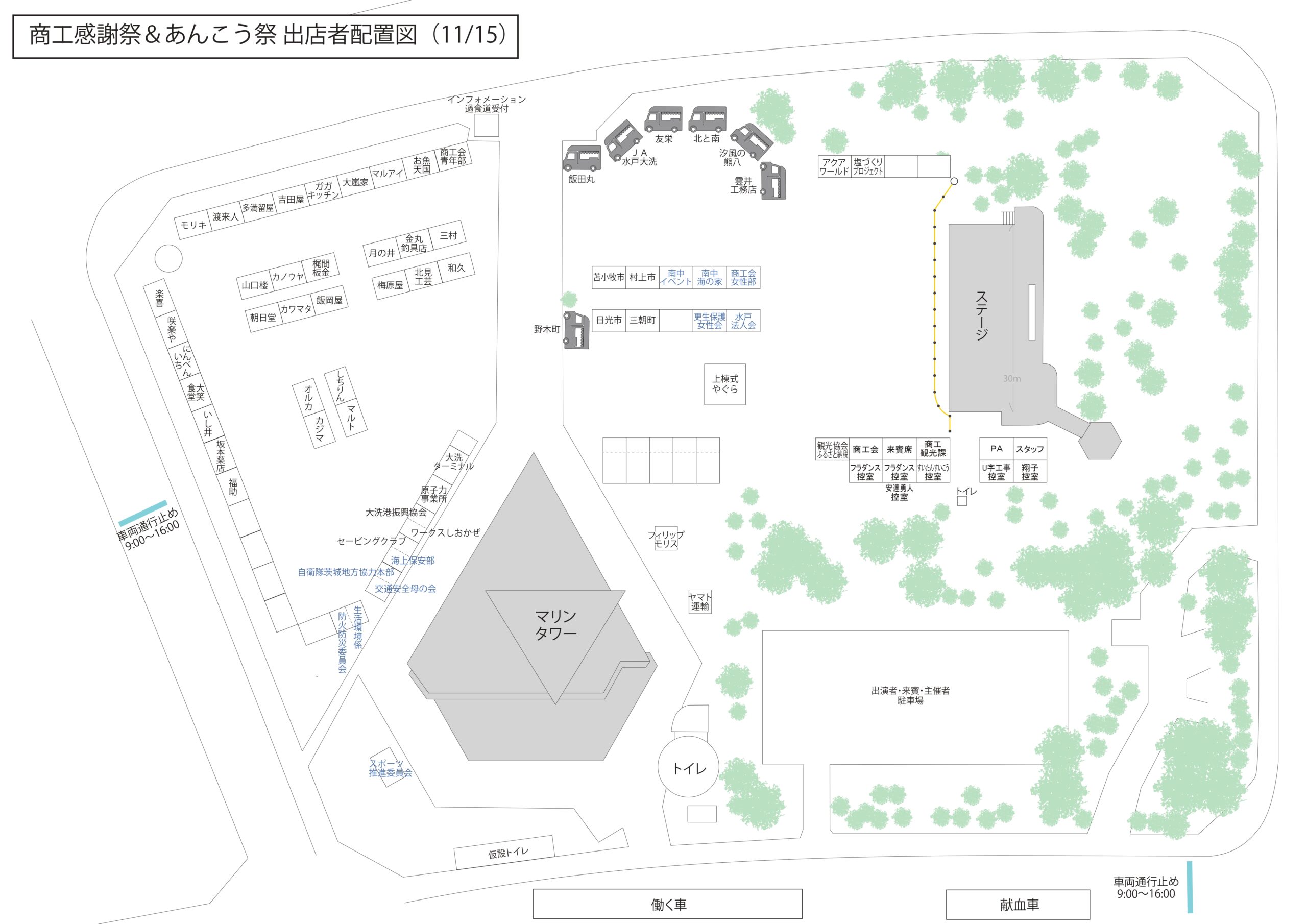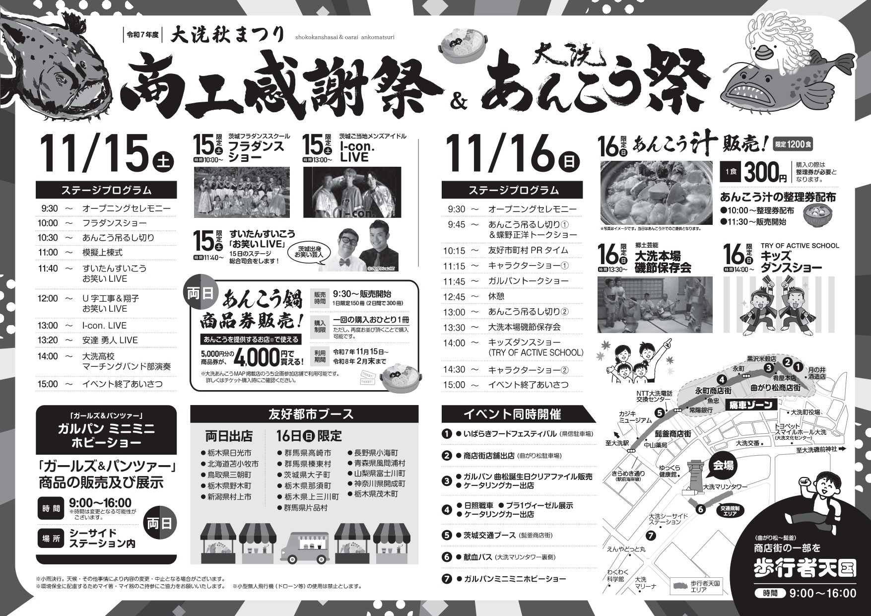 商工感謝祭&大洗あんこう祭開催に伴い、会場周辺および商店街の一部が歩行者天国(交通規制)となります。