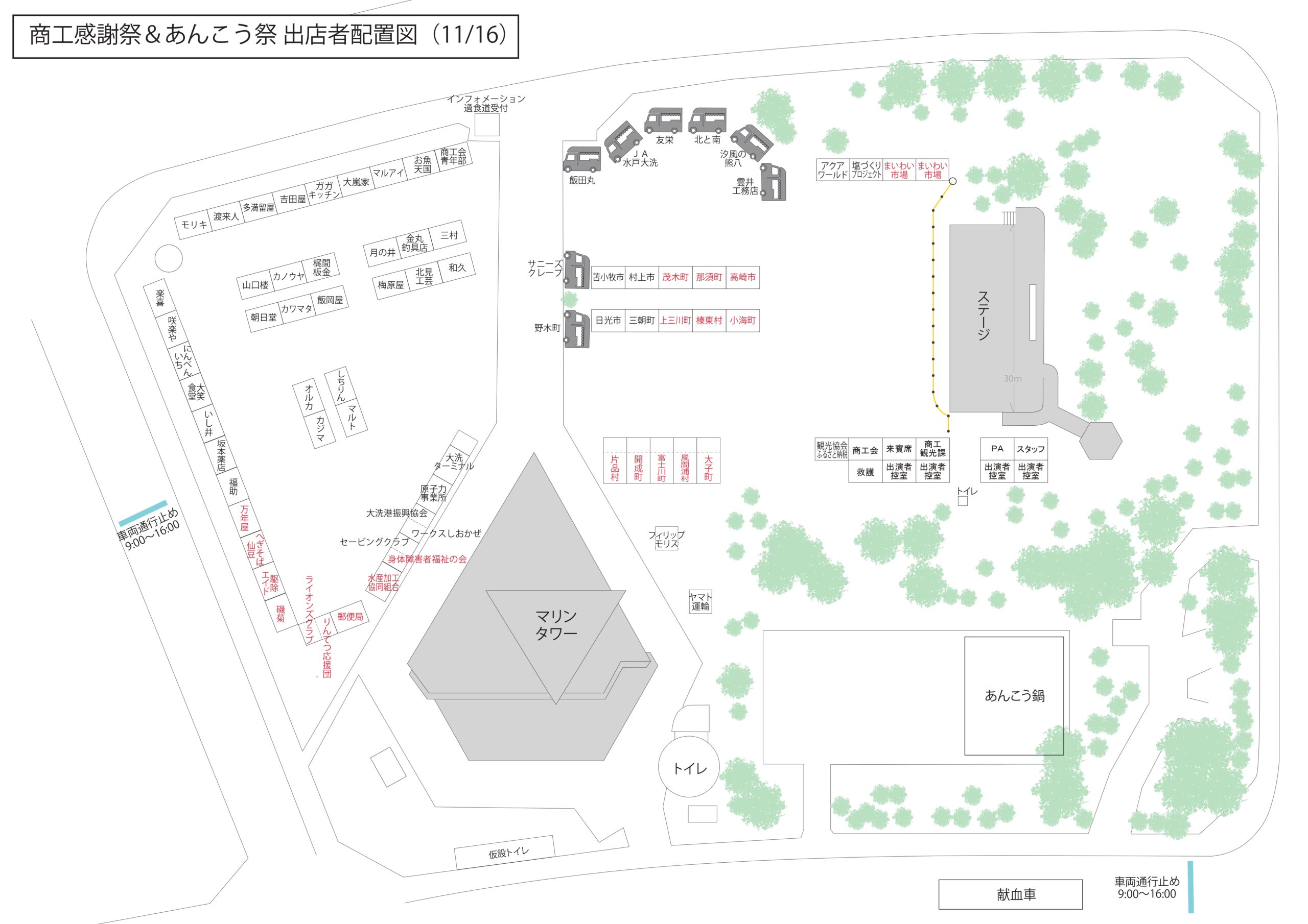 商店街周辺交通規制時間:午前9時~午後4時まで(11月16日のみ)