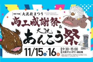 今年も秋の2大イベントが連日開催! 今年も大洗マリンタワー前広場(以下、大洗マリンタワー)を会場に、「令和7年度商工感謝祭&大洗あんこう祭」として2日間開催します!両日ともに多くの模擬店が出店し、ステージイベントも盛りだ … 続きを読む 【開催告知】商工感謝祭&大洗あんこう祭