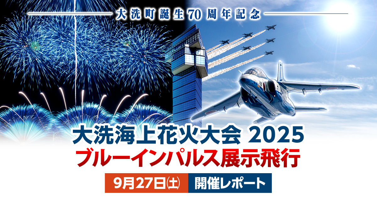 2025年9月27日(土)、大洗町誕生70周年を記念し、日本が誇る航空自衛隊アクロバットチーム『ブルーインパルス』による展示飛行、大洗高校マーチングバンド部『B...